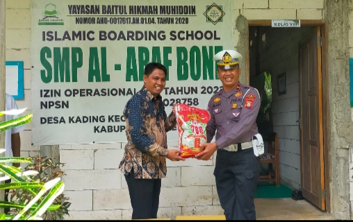 Kasat Lantas berharap dengan adanya bantuan sosial ini dapat meringankan beban dalam memenuhi kebutuhan hidup para pelajar yang sedang menimba ilmu di Yayasan Baitul Hikmah Muhiddin SMP Al - Araf Bone.